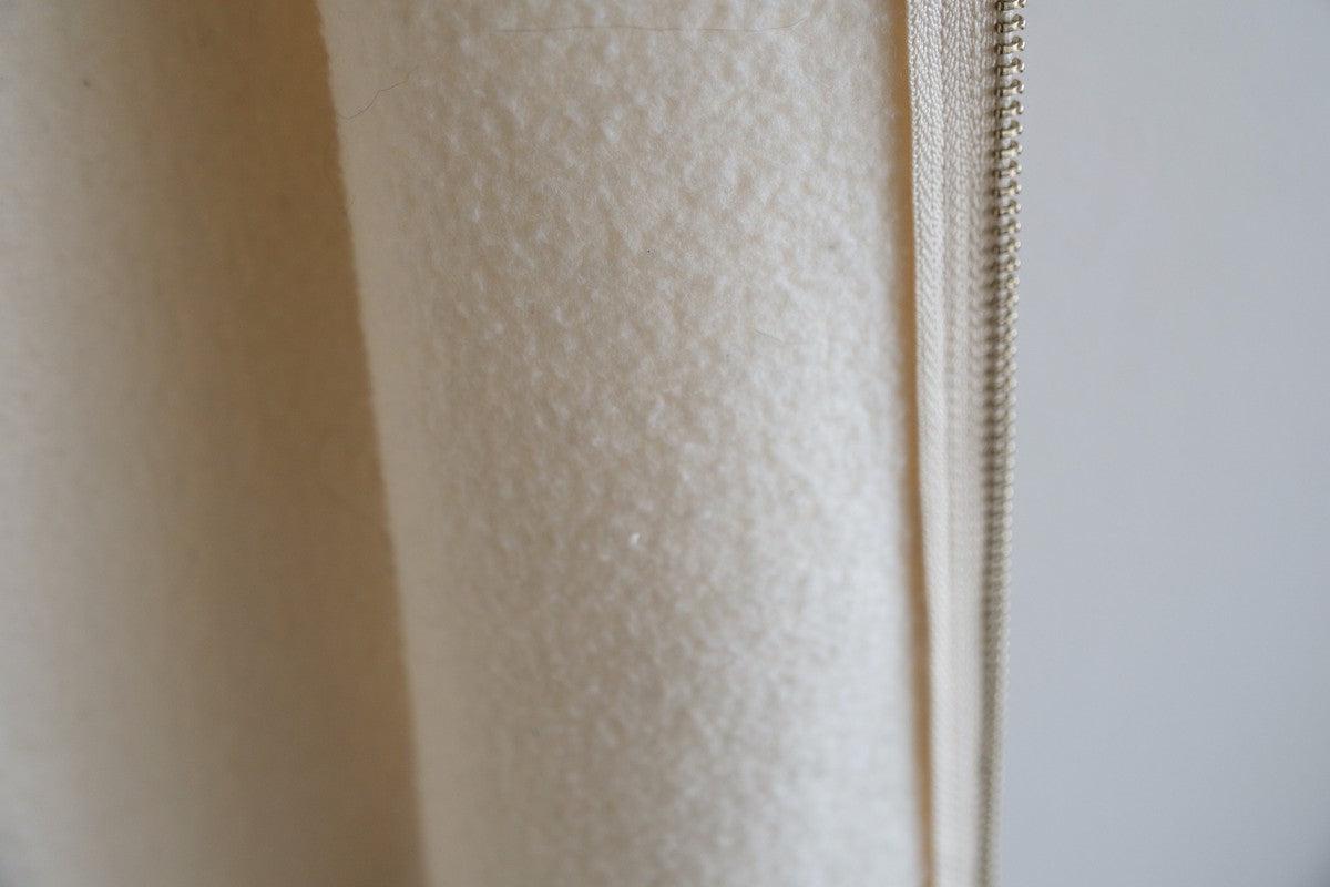 内側の細かい起毛はフェルトのようなふわふわの感触。起毛をかけると実際生地も軽くなるので、それが着心地の良さにつながっています。